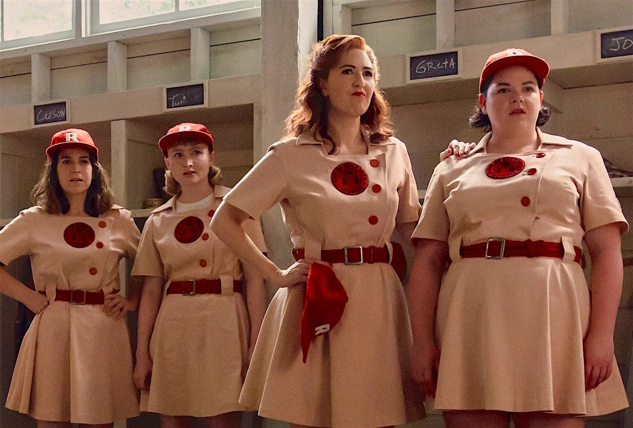 We also finished the first season of A League of Their Own, and I sure hope it’s the first of many. The movie itself–which, as I’m sure you know, concerns the 1940s-set exploits of a team in the All-American Girls Professional Baseball League–is ripe for serialization, and co-creators Abbi Jacobson, who also stars, and Will Graham drape their season (which tells an original story unrelated to the movie) across the convenient narrative clothesline of a baseball season. But this is not necessarily a show “about” baseball; the game serves more as a vehicle for the characters and their journeys, the majority of which have to do with queer identity.